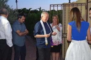 La tarde noche del pasado 17 de junio de 2016, el cuartelillo de la Comparsa Cristiana Lanceros de Uchel fue una autentica fiesta. Todos estábamos expectantes a las puertas del Castillo Lancero, éramos más de 300 entre festeros, simpatizantes e invitados, esperando que el alcalde de Aspe Antonio Puerto García cortase la simbólica cinta colocada en la artística puerta de acceso al recinto. El niño David Mira Cremades, Pregonero Infantil de las Fiestas de Moros y Cristianos 2014 portaba la tijera con la que el Alcalde nos franqueó la entrada. El Rector de la Basílica de Nuestra Sra. del Socorro D. Fernando Navarro Cremades, bendijo las instalaciones y todos al pasar a su interior quedamos gratamente sorprendidos.