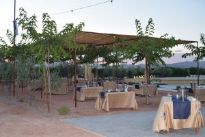 El enclave es un sitio perfecto, se encuentra en el paraje llamado Huerta Mayor y está rodeado de parras de uva, que en esta época lucen todo su verdor. Cuenta con escenario, pista de baile, zonas ajardinadas, árboles bastante crecidos, zona cubierta para refugiarse del sol, una gran barra también con pérgola y un local social cuyas dimensiones son la envidia de las demás comparsas de Aspe.